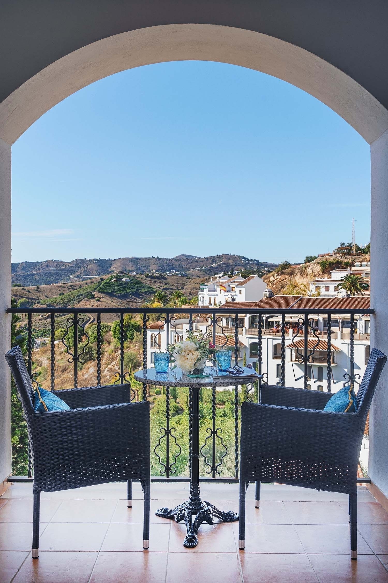 Nuestras Habitaciones Clásicas cuentan con un balcón privado desde el que podrás disfrutar de las vistas a la montaña. Están ubicadas en el edificio central del hotel, distribuidas a lo largo de cinco plantas, y ofrecen el equilibrio perfecto entre comodidad y encanto andaluz.